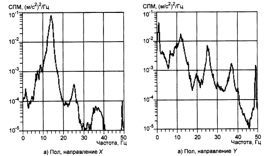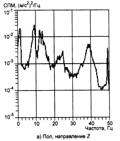 Рисунок А.3 - Спектральные плотности мощности (СПМ) корректированного сигнала ускорения на уровне пола, полученные по результатам измерений в зоне 1