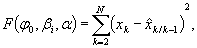 где через nm обозначены изменяющиеся моменты времени. Затем определяются параметры β1, β2 путем минимизации функционала
