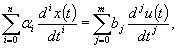 В Приложении 3 приведен пример, отражающий методы оценивания параметров комплексной динамической модели и прогнозирования по ней. 4.14. Двузвеньевая модель представляет собой последовательное соединение двух инерционных звеньев первого порядка. Такая структура модели позволяет учитывать инерционное запаздывание продолжительностью до половины основной гармоники, сохраняя при этом хорошие сглаживающие свойства математического описания, присущие звену первого порядка, и высокую точность описания, присущую звену второго порядка. Двузвеньевая модель во многих случаях декоррелирует входные воздействия и обладает устойчивостью. 4.15. Двузвеньевая стационарная модель непрерывного процесса одномерного перемещения x(t), включающая n входных воздействий, представленная типом «вход - выход», имеет вид