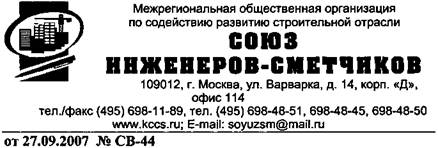 Одобрены Союзом инженеров-сметчиков Согласованы с