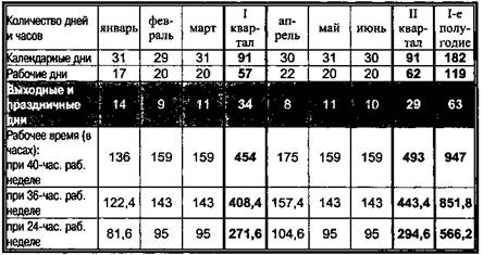 11 августа Согласно действующему законодательству норма рабочего времени на определенные периоды времени исчисляется по расчетному графику пятидневной рабочей недели с двумя выходными днями в субботу и воскресенье, исходя из продолжительности ежедневной работы 8 часов при 40-часовой рабочей неделе. Продолжительность рабочего дня, непосредственно предшествующего нерабочему праздничному дню, уменьшается на один час (статья 95 Трудового кодекса Российской Федерации). При продолжительности рабочей недели менее 40 часов для исчисления нормы рабочего времени применяется количество часов, получаемое в результате деления установленной продолжительности рабочей недели на пять дней. Исчисленная в указанном порядке норма рабочего времени распространяется на все режимы труда и отдыха. Например, в январе Норма рабочего времени в этом месяце составляет: при 40-часовой рабочей неделе - 136 часов (8 час.×17 дней); при 36-часовой рабочей неделе - 122,4 часа (36 час.: 5 дней×17 дней); при 24-часовой рабочей неделе - 81,6 часа (24 час.: 5 дней×17 дней). В феврале при пятидневной рабочей неделе с двумя выходными днями по Производственному календарю на 2008 год 20 рабочих дней, 9 выходных дней с учетом дополнительного дня отдыха 25 февраля в связи с совпадением выходного дня - 23 февраля с нерабочим праздничным днем - Днём защитника отечества. Продолжительность работы в четверг 22 февраля 2008 года сокращается на один час (статья 95 Трудового кодекса Российской Федерации). Норма рабочего времени в феврале 2008 года составляет: при 40-часовой рабочей неделе - 159 час (8 часов×20 дней - 1 час); при 36-часовой рабочей неделе - 143 часа (36 часов : 5 дней×20 дней - 1 час); при 24-часовой рабочей неделе - 95 часа (24 часа : 5 дней×20 дней - 1 час). В июне при пятидневной рабочей неделе с двумя выходными днями по Производственному календарю на 2008 год 20 рабочих дней, 9 выходных дней и один нерабочий праздничный день - 12 июня. Продолжительность работы в четверг 11 июня 2008 года сокращается на один час (статья 95 Трудового кодекса Российской Федерации) Норма рабочего времени в июне 2008 года составляет: при 40-часовой рабочей неделе - 159 часов (8 часов×20 дней - 1 час); при 36-часовой рабочей неделе - 143 часа (36 часов : 5 дней×20 дней - 1 час); при 24-часовой рабочей неделе - 95 часов (24 часа : 5 дней×20 дней - 1 час). В 2008 году при пятидневной рабочей неделе с двумя выходными днями - 250 рабочих дней, в том числе 7 предпраздничных дней (22 февраля, 7 марта, 30 апреля, 8 мая, 11 июня, 1 ноября, 31 декабря), 116 выходных и нерабочих праздничных дней с учетом 2 дополнительных дней отдыха - 8 января и 25 февраля в связи с совпадением выходных дней 5 января и 23 февраля с нерабочими праздничными днями - праздничный день, входящий в Новогодние каникулы, и День защитника Отечества. Норма рабочего времени в 2008 году составляет: при 40-часовой рабочей неделе - 1993 часа (8 часов×250 дней - 7 часов); при 36-часовой рабочей неделе - 1793 часа (36 часов : 5 дней×250 дней - 7 часов); при 24-часовой рабочей неделе - 1193 часа (24 часа : 5 дней×250 дней - 7 часов). 3. В тех случаях, когда в связи с праздником выходной день переносится на рабочий день, продолжительность работы в этот день (бывший выходной) должна соответствовать продолжительности рабочего дня, на который перенесен выходной день. 4. Среднемесячное количество рабочих часов, применяемое при определении часовой тарифной ставки из установленной меся