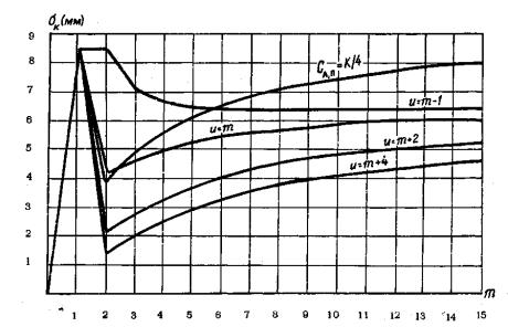 Рис. 2.4. Зависимость среднего квадратического отклонения размера зазора в вертикальном стыке между ВС σК от числа размеров зазоров m в цепи сопрягаемых элементов (п.5 табл. 2.1)