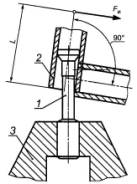1 - ПУ; 2 - приспособление для крепления и передачи нагрузки 6.2.3 Испытания ПУ на устойчивость и прочность к изгибу 6.2.3.1 Метод проведения испытания зависит от подкласса и типа ПУ. Пломбы для контрольно-силового блокирования, контрольные и индикаторные пломбы проволочного, ленточного и канатного типов с диаметром каната до 2,5 мм (включительно) испытывают на способность выдерживать повторяющиеся циклы изгиба без разрушения. Усиленные и защитные пломбы канатного типа испытаниям на изгиб не подвергают. Усиленные и защитные пломбы стержневого типа испытывают на сопротивление деформации изгиба. 6.2.3.2 Корпус пломб канатного, проволочного или ленточного типов закрепляют в приспособлении. Гибкий элемент пломбы (проволоку, ленту) многократно изгибают на 180° до разрушения. Каждый цикл изгиба на угол 180° должен выполняться в течение 3 с. Пломбу (канатную, проволочную, ленточную) считают выдержавшей испытание на устойчивость и прочность к воздействию многократных циклов изгиба, если число циклов изгиба, выдержанное пломбой до разрушения, Nр равно или превышает нормируемое значение циклов изгиба до разрушения Nр ³ NН, где NН - нормируемое число циклов изгиба до разрушения, установленное в таблице 3. Таблица 3 - Нормируемые значения циклов изгиба и изгибающего момента