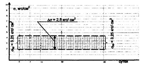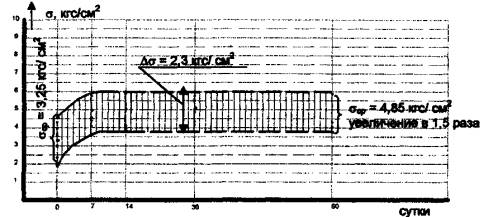 Рис. 1. Изменение адгезии "кровлелона" к "техноэласту" при длительном воздействии воды при 20 °С. При длительном воздействии "холодной" воды (в течение 60 суток) показатели адгезии практически не изменились: они находились в указанном выше интервале. Через 7 суток действия "горячей" воды произошло увеличение (в 1,5 раза) адгезии (рис. 2), что можно объяснить, видимо, "доподплавлением" битумного вяжущего "техноэласта" и улучшением за счет этого склеивания по всей площади контакта. В дальнейшем (после 7 суток) показатель адгезии стабилизировался.