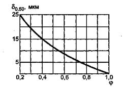 Рисунок А.2 - Зависимость средней тонкости отсева δ0,50 от коэффициента отсева ф фильтра (фильтрующего элемента)