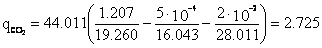 Расчет удельных выбросов СО2, H2O, N2 и O2 на единицу массы сжигаемого попутного нефтяного газа (кг/кг)