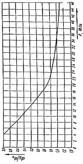 При определении условий выполнения кладки следует иметь в виду, что в прошлые века и в начале текущего столетия кладка на известковых растворах велась, как правило, только в летних условиях. Кладка в зимних условиях на цементно-известковых или цементных растворах начала производиться в 30-х годах нашего века. Если неизвестны условия возведения кладки, а раствор цементно-известковый или цементный, то следует учитывать поправочный коэффициент (см. табл. 1.7) для зимних условий работ. Прочность древесины можно определить путем испытания вырезанных из конструкций образцов. Необходимость в этом может возникнуть при поражении древесины гнилью; так как при эксплуатации деревянных конструкций в нормальных условиях прочность древесины не изменяется. При обследовании деревянных, не пораженных гнилью конструкций нужно лишь установить породу древесины. 1.2.4 Неразрушающие методы обследования конструкций К неразрушающим методам обследования конструкций относятся те, которые не нарушают целостность элементов конструкций или приводят к небольшим местным повреждениям поверхности конструкции, не снижающим ее несущей способности. Неразрушающие методы обследования конструкций получили наибольшее развитие для определения механических свойств бетона. Неразрушающие методы испытания бетона в строительных конструкциях подразделяются на механические и физические, хотя такое деление недостаточно строго, так как механика является разделом физики. Механические методы, испытания прочности бетона Механические методы испытания прочности бетона основаны на связи между твердостью бетона или его прочностью на растяжение и прочностью бетона на сжатие. Твердость бетона определяют путем вдавливания в него ударника. Прочность бетона на растяжение получают при испытании на отрыв. Имеется много приборов, позволяющих определить твердость бетона. Среди них можно выделить группу приборов, делающих отпечаток только на поверхности бетона. Образовать вмятины на поверхности бетона можно следующим образом: - ручным ударом (шариковый молоток И.А. Физделя); - ударом бойка под действием пружины (приборы МЗ, ЛИСИ, М.А. Новгородского, Оргсовхозстроя, П.И. Звонарева); - ударом стрельбой или взрывом (метод Б.В. Скромтаева, метод ВИА, строительно-монтажный пистолет); - ударом бойка под действием силы тяжести - свободного падения (дисковой прибор ДПГ-4, маятниковый молоток); - статическим вдавливанием штампа в бетон (способ Г.К. Хайдукова А.К. Годера и Р.К. Рачевского). Одновременное образование вмятин на поверхности бетона и на эталоне можно получить: - ручным ударом (эталонный молоток К.П. Кашкарова, прибор ДорНИИ., СД-2); - ударом бойка под действием пружины (приборы Польди-Вайцмана, И.А. Васильева). В приборах, дающих только отпечатки на бетоне, кроме дискового прибора ДПГ-4 и прибора, основанного на статическом вдавливании, предложенного Г.К. Хайдуковым, А.И. Годером и P.M. Рачевским, размер отпечатков зависит от силы удара, жесткости пружины, давления пороховых газов. В связи с этим точность определения прочности бетона этими приборами невысокая. Приборы, основанные на одновременном получении отпечатков на бетоне и эталоне, дают большую точность, так как соотношение диаметров отпечатков на бетоне и эталоне не зависит от силы удара. Рис. 1.18 Тарировочная кривая для опре