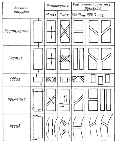 - образование и развитие почти всех типов трещин происходит в условиях переменных по интенсивности и направлению тектонических напряжений, повторяющихся во времени, поэтому тектоническая трещиноватость играет доминирующую роль; напряженно-деформированное состояние определяет форму, размер и ориентацию ЭПБ (рис. 1-1, 1-2); Рис. 1-1. Схемы расположения трещин отрыва и скалывания при различных видах нагрузок (по Я.Б. Фридману [78]). - ориентация трещин последующей генерации в значительной степени наследует и использует ориентацию предыдущих генераций; - ориентация серий параллельных друг другу плоскостей тектонических разрывных смещений и трещин разных порядков имеет системный характер; - ориентация серий тектонических разрывных смещений и мелких трещин в пространстве совпадает или очень близка друг к другу; - каждая трещина нарушает сплошность скальной породы и представляет собой зону относительного ослабления, способствующую изменению ее напряженного состояния и проявлению процессов выветривания. Трещиноватость, включающая в себя разноориентированные системы трещин разных порядков, образует в массиве различные по размеру и форме ячей «сети зон» ослабления, причем в каждой из ячей располагается блок относительно сохранных пород. Форма и размер блока определяются характером сочленения плоскостей трещин, развитых в конкретной части изучаемого массива. Такой характер горной геометрии обязывает рассматривать скальный массив как расчлененную трещинами среду зонально-блочного строения. Свойства этой среды определяются соответствующими характеристиками пород (как материала), а также параметрами трещиноватости. При этом существенную роль играют размеры нарушений сплошности, представленные в табл. 1-2, являющейся развитием классификации СНиП 2.02.02-85 (табл. 5). Из мелких трещин особое значение имеют трещины кливажа разлома, скалывания и течения IX порядка в случае их массового развития - типа сланцеватости и локализованные в пакетах слоев - типа будинажа или зон дробления. Самостоятельное инженерное значение имеют тектонические разрывные смещения всех порядков (I - VI). Плоскости их сместителей сопровождаются дополнительными трещинами разлинзования и оперения, образующими примерно симметричную зону ослабления пород, мощность которой связана с порядками разрывов. Дизъюнктивные дислокации и пликативные деформации в натуре кинематически взаимосвязаны, поэтому складки также могут быть разделены на порядки по признаку порядков плоскостей разрывов, ограничивающих площадь данной части складки. Рис. 1-2. Образование трещин при сдвиге (схема напряжений) а - расположение главных осей растяжения +sтmax и сжатия -smax; б - направление максимальных касательных напряжений tmax и трещин отрыва (толстая диагональ). Толстые сплошные стрелки - пара активных внешних сил; тонкие штрихпунктирные - пара реактивных сил, удерживающих тело от вращения. Малые стрелки внутри фигуры - направление напряжений и смещений. Таблица 1-2 Классификация по характеру нарушения сплошности массива (СНиП 2.02.02-85 с дополнениями)