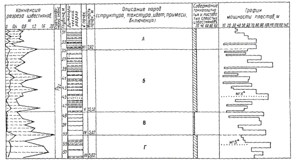 включает эпюру мощности пластов (отделенных трещинами по напластованию),