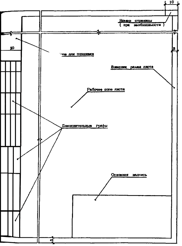 Рис. 5. Пример выполнения ведомости документов основного комплектаРис. 6. Расположение основной надписи, дополнительных граф к ней и размерных рамок на листах