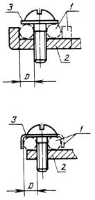 Форма места расположения проводника может быть иной по сравнению с изображенной на рисунке при условии, что в нее можно будет вписать окружность диаметром, равным минимальной величине, указанной для D. Форма верхней и нижней сторон прижимной планки может быть неодинаковой, что обусловлено различными размерами сечения проводника, и поэтому при зажатии проводника ее можно переворачивать. Рисунок 3 - Зажимы с прижимной планкой