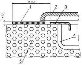 После испытания сальники и оболочки образцов не должны иметь повреждений, нарушающих требования настоящего стандарта. 20.4 Если испытательное усилие необходимо приложить к крышкам, накладкам или приводным элементам, выключатели устанавливают, как при нормальной эксплуатации. Выключатели скрытого типа закрепляют в подходящей монтажной коробке, которую устанавливают, как при нормальной эксплуатации, так, чтобы края коробки были утоплены в стенах, и оборудуют ее крышками, накладками и приводными элементами. Если ее снабжают запирающими устройствами, которые могут устанавливаться без помощи инструмента, эти коробки не запирают. Соответствие проверяют испытаниями по 20.4.1 и 20.4.2. 20.4.1 Проверка несъемных крышек, накладок или приводных элементов Усилия постепенно прикладывают в направлении, перпендикулярном монтажным поверхностям, чтобы в результате сила, действующая в центре крышек, накладок, приводных элементов или их частей составляла: 40 Н - для крышек, накладок, приводных элементов или их частей, соответствующих испытаниям 20.7 и 20.8; 80 Н - для других крышек, накладок и приводных элементов. Усилие прикладывают в течение 1 мин. Крышки, накладки или приводные элементы не должны приводить к выключению. Затем испытание повторяют на новых образцах, при этом крышки или накладки устанавливают на стене, подложив вокруг опорной рамы лист твердого материала толщиной (1 ± 0,1) мм, как показано на рисунке 19. Примечание - Лист твердого материала используют вместо обоев и он может состоять из нескольких кусков. После испытания образцы не должны иметь повреждений, приводящих к несоответствию настоящему стандарту. 20.4.2 Проверка съемных крышек, накладок или приводных элементов Усилие, не превышающее 120 Н, прикладывают постепенно в направлении, перпендикулярном монтажной/опорной поверхностям, к крышкам, накладкам, приводным элементам или их частям посредством крючка, прикладывая его к каждому из желобков, отверстий или аналогичных мест, предусмотренных для их снятия. Крышки, накладки или приводные элементы не должны приводить к выключению. Испытание проводят по 10 раз на каждой части, не зафиксированной винтами (точки приложения распределяют, насколько реально): движущее усилие прикладывают каждый раз к различным желобкам, отверстиям или подобным местам, предназначенным для снятия отдельных деталей. Затем испытание повторяют на новых образцах, при этом крышки или накладки устанавливают на стене, подложив вокруг опорной рамы лист твердого материала толщиной (1 ± 0,1) мм, как показано на рисунке 19. После испытания образцы не должны иметь повреждений, приводящих к несоответствию настоящему стандарту. 20.5 Испытание проводят согласно 20.4, но с приложением для проверок по 20.4.1 следующих усилий: 10 Н - для крышек или накладок, или приводных элементов с испытанием по 20.7 и 20.8; 20 Н - для других крышек или накладок, или приводных элементов. 20.6 Испытание проводят согласно 20.4, но с приложением для проверок по 20.4.1 усилия 10 Н для всех крышек, накладок или приводных элементов. 20.7 Калибром, соответствующим рисунку 20, нажимают на каждую сторону крышки, накладки или приводного элемента, которые устанавливают без винтов на монтажной или опорной поверхности, как показано на рисунке 21. При испытании калибр прикладывают к прямому углу каждой стороны поверхностью В, опираясь