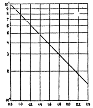 где R - расстояние от центра индикатора до центра источника, м; А - 840 а - интенсивность гамма-излучения эталона на расстоянии 1 м от него, мкр./ч; d - гамма-эквивалент источника, мг-экв радия (указывается в паспорте); j - коэффициент, учитывающий длину индикатора и рассеянное излучение источника; при R от 1 до 2,5м он равен 1,3; при R от 2,5 до 3м - 1,1; при R более 3м - 1,2. 4.6. Наибольшая скорость перемещения V скважинного зонда определяется по формуле