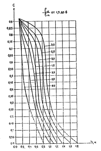 где n - замер скорости крыльчатки в данной точке; пэф и пвых - соответственно средняя скорость вращения крыльчатки в меньшем (выходном) и большем (входном) сечении за пределами влияния помех, связанных с длиной каверны и сменой сечения. Значение С можно снять с палетки (прил. 24). 11.25. По известному (определенному) С рассчитывают скорость вращения крыльчатки для точек расходограммы в интервале помех: