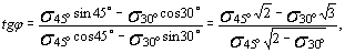 где Р - разрушающая нагрузка при срезе, кгс; d - диаметр образца, см; h - высота образца, см. Для каждого угла наклона усредняются величины полного разрушающего напряжения. 3.19. Паспорт прочности пород строят графически (рис. 7). Параметры его С - удельное сцепление, кгс/см2, и tgj - коэффициент внутреннего трения вычисляют по формулам: