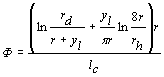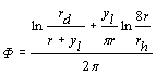 yh - напор (ордината уровня воды) в скважине, м;