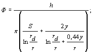 rh - радиус скважины (дрены, половина ширины дрены), м;