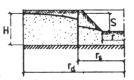 rs - приведенный радиус контурной противофильтрационной завесы по ее внутренней грани, м;
