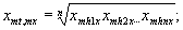 xmt,mx - среднее расстояние от расчетной точки до зеркального отображения скважин относительно оси х м;