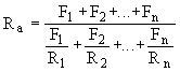 где F1, F2, .., Fn - площади отдельных участков конструкции (или части ее), м2; R1, R2, ..., Rn - термические сопротивления указанных отдельных участков конструкции, определяемые по формуле (3) для однородных участков и по формуле (5) для неоднородных участков; б) плоскостями, перпендикулярными направлению теплового потока, ограждающая конструкция (или часть ее, принятая для определения Ra) условно разрезается на слои, из которых одни слои могут быть однородными - из одного материала, а другие неоднородными - из однослойных участков разных материалов. Термическое сопротивление однородных слоев определяется по формуле (3), неоднородных слоев - по формуле (6) и термическое сопротивление ограждающей конструкции Rб - как сумма термических сопротивлений отдельных однородных и неоднородных слоев - по формуле (5). Приведенное термическое сопротивление ограждающей конструкции следует определять по формуле