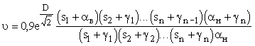 r - коэффициент поглощения солнечной радиации материалом наружной поверхности ограждающей конструкции, принимаемый по прил. 7; Imax, Iср - соответственно максимальное и среднее значения суммарной солнечной радиации (прямой и рассеянной), Вт/м2, принимаемые согласно СНиП 2.01.01-82 для наружных стен - как для вертикальных поверхностей западной ориентации и для покрытий - как для горизонтальной поверхности; aн - коэффициент теплоотдачи наружной поверхности ограждающей конструкции по летним условиям, Вт/(м2 °С), определяемый по формуле (24). 3.4*. Величину затухания расчетной амплитуды колебаний температуры наружного воздуха v в ограждающей конструкции, состоящей из однородных слоев, следует определять по формуле