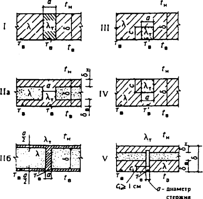 ПРИЛОЖЕНИЕ 5*СХЕМЫ ТЕПЛОПРОВОДНЫХ ВКЛЮЧЕНИЙ В ОГРАЖДАЮЩИХ КОНСТРУКЦИЯХ