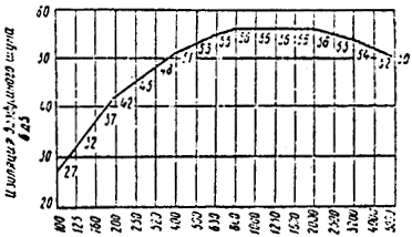 Рис. 8. Частотная характеристика изоляции воздушного шума однослойным плоским ограждением Рис. 9. График для определения координат точки В Объемный вес в кг/м3: