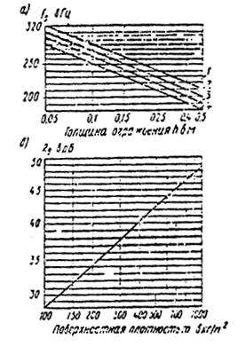 где m - поверхностная плотность в кг/м2 (для ребристых плит принимается без учета ребер); К - коэффициент: для сплошной ограждающей конструкции плотностью более 1800 кг/м3 К = 1; для ограждающих конструкций плотностью 1200 - 1300 кг/м3 из бетонов на гипсовом вяжущем К = 1,25; для ограждающих конструкций из железобетона и бетона с круглыми пустотами плотностью более 1800 кг/м3 коэффициент К следует определять по формуле