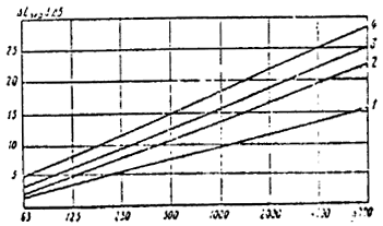 Примечание. Постоянную помещения В1000 для помещений четвертого типа можно применить при определении В по формуле (4) только при расчете требуемой частотной характеристики изоляции воздушного шума ограждающей конструкцией и акустическом расчете вентиляционных систем. Во всех других случаях постоянную помещения В в октавных полосах следует определить согласно требованиям раздела 7 настоящих норм. Таблица 4
