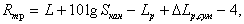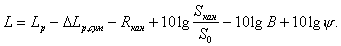 в) при проникновении шума с прилегающей территории в помещение по формуле