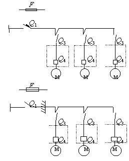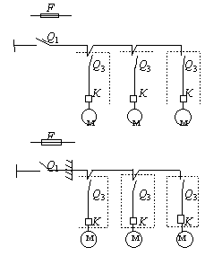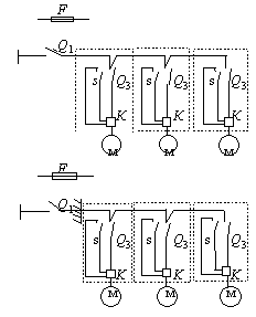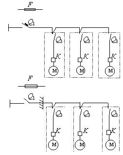 Примечания: 1. Местоположение не встроенных в оборудование пусковых и отключающих аппаратов определяется по согласованию с технологами. 2. Присоединение электроприемников в цепочку осуществляется без разрыва проводов. 3. Экспликация к схемам приведена в примеч. к прил. 3. Обязательное приложение 3Схемы присоединения силовых электроприемников технологического (теплового и механического) оборудования