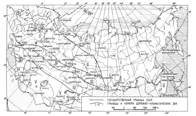 Примечания: 1. Большие значения коэффициента уплотнения грунта следует принимать при цементобетонных покрытиях и цементогрунтовых основаниях, а также при дорожных одеждах облегченного типа, меньше значения - во всех остальных случаях. 2. В районах поливных земель при возможности увлажнения земельного полотна требования к плотности грунта для всех типов дорожных одежд следует принимать такими же, как указано в графах для II и III дорожно-климатических зон. 3. Для земляного полотна, сооружаемого в районах распространения островной высокотемпературной вечной мерзлоты, коэффициенты уплотнения следует принимать такими же, как для II дорожно-климатической зоны. |