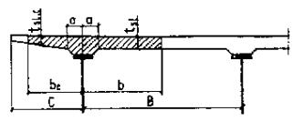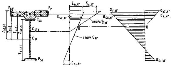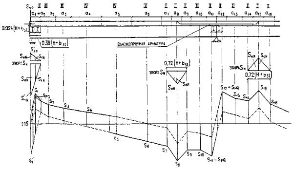 ___________ * При смешанном армировании допускается повышать предельные растягивающие напряжения в бетоне согласно указаниям п. 3.96*. В конструкциях автодорожных и городских мостов с проволочной напрягаемой арматурой при расположении ее в плите проезжей части предельные значения растягивающих напряжений в бетоне в направлении его обжатия не должны быть более 0,8 Rbt,ser. ** При оцинкованной проволоке допускается принимать Dcr = 0,02 см. *** Ширина раскрытия трещин не должна превышать, см: 0,020 - в элементах пролетных строений железнодорожных мостов, в верхних плитах проезжей части автодорожных и городских мостов при устройстве на них гидроизоляции, в стойках и сваях всех опор, находящихся в зоне переменного уровня воды, а также в элементах и частях водопропускных труб; 0,015 - в элементах промежуточных опор железнодорожных мостов в зонах, расположенных выше и ниже переменного уровня воды; 0,010 - на уровне верхней грани в продольных стыках верхних плит проезжей части автодорожных и городских мостов. При расположении мостов и труб вблизи плотин гидростанций и водохранилищ в зоне попеременного замораживания и оттаивания (в режиме по ГОСТ 10060-87) ширина раскрытия трещин в зависимости от числа циклов попеременного замораживания в год должна составлять, см, не более: 0,015 - при числе циклов менее 50; 0,010 -то же, 50 и более. Расчеты по определению напряжений в бетоне, образованию трещин и определению ширины их раскрытия должны производиться с учетом потерь предварительного напряжения в арматуре согласно обязательному приложению 11*. В составных предварительно напряженных конструкциях мостов всех назначений возникновение растягивающих напряжений в обжимаемых стыках, а также в элементах сквозных пролетных строений железнодорожных мостов не допускается. В составных по длине конструкциях пролетных строений мостов минимальные сжимающие напряжения в бетоне при воздействии создаваемой нормативной постоянной нагрузкой должны соответствовать категории требований по трещиностойкости 2б. В неразрезных пролетных строениях, составленных из разрезных преднапряженных балок с надопорными необжатыми бетонируемыми стыками, армированными ненапрягаемой арматурой, ширина трещин в бетоне под нормативной нагрузкой должна отвечать категории требований 3. 3.96*. В автодорожных и городских мостах при применении смешанного армирования предельные растягивающие напряжения в бетоне допускается повышать до 2Rbt,ser при условии, что все усилие от части эпюры растягивающих напряжений, возникающее на той части площади сечения, на которой растягивающие напряжения превышают 1,4Rbt,ser, воспринимается только ненапрягаемой арматурой. Кроме этого, при расчете ширины поперечных трещин следует руководствоваться указаниями пп. 3.108* и 3.109*. 3.97*. В обжатом бетоне конструкций, проектируемых по категории требований по трещиностойкости 2а, при проверке возможности прохода по монтируемой части моста монтажного крана, с грузом допускается принимать: предельные значения нормальных растягивающих напряжений в бетоне - 1,15 Rbt,ser; предельные значения расчетной ширины раскрытия трещин - 0,01 см. При расчете следует учитывать снижение предварительных напряжений в напрягаемой арматуре, соответствующее потерям за год. 3.98*. В элементах конструкций, проектируемых по категориям требований по трещиносто