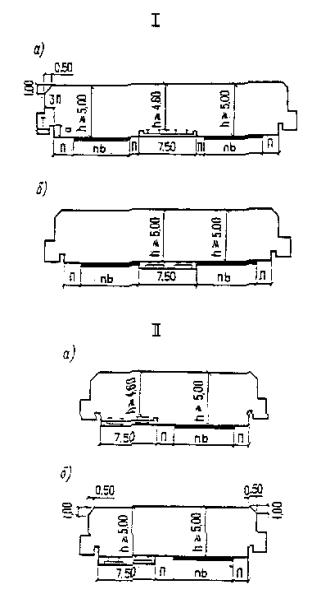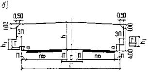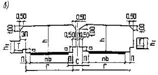 * Считая от верха звена (плиты перекрытия) трубы или от верхней точки свода до подошвы рельсов - на железных дорогах или до низа монолитных слоев дорожной одежды - на автомобильных дорогах. ** Но не менее 0,8 м от верха звена трубы до поверхности дорожного покрытия. *** Но не менее 0,5 м до уровня бровки земляного полотна. Примечание. Толщину засыпки над железобетонными трубами и пешеходными тоннелями, расположенными в пределах железнодорожных станций, допускается принимать менее 1,0 м. В обоснованных случаях на улицах и автомобильных дорогах толщину засыпки над трубами и закрытыми лотками допускается принимать менее 0,5 м. Во всех случаях при уменьшенной толщине засыпки должны выполняться содержащиеся в п. 2.22* указания по учету соответствующего динамического воздействия временных нагрузок. ОСНОВНЫЕ ТРЕБОВАНИЯ К КОНСТРУКЦИЯМ1.9*. Основные размеры пролетных строений и опор новых мостов, а также труб следует назначать с соблюдением принципов модульности и унификации в строительстве. При разработке типовых проектов железнодорожных мостов и труб следует предусматривать возможность использования их при строительстве вторых путей и замене пролетных строений на эксплуатируемой сети. Расчетные пролеты или полную длину пролетных строений автодорожных и городских мостов на прямых участках дорог при вертикальных и перпендикулярных оси моста опорах следует назначать равными 3, 6, 9, 12, 15, 18, 21, 24, 33 и 42 м, а при больших размерах пролетов - кратными 21 м. Приведенные размеры следует принимать в качестве полной длины для разрезных пролетных строений: до 42 м включ. - из железобетона, до 33 м включ. - из других материалов. Во всех остальных случаях, а также для пролетных строений со сквозными главными фермами приведенным размерам должны соответствовать расчетные пролеты. Отступление от указанных размеров допускается при технико-экономическом обосновании при проектировании: мостов, возводимых вблизи существующих; многопролетных путепроводов через железнодорожные станционные пути; деревянных мостов пролетами менее 9 м, а также отдельных пролетов мостов сложных систем (неразрезных, рамно-подвесных, рамно-консольных). При применении в конструкциях сооружений типовых элементов или стандартных деталей необходимо учитывать установленные для них допустимые отклонения в геометрических размерах. Для сборных элементов, изготовляемых применительно к данной конструкции моста или трубы, в проекте при соответствующем обосновании могут быть установлены свои величины этих отклонений. 1.10. Массу и размеры элементов сборных конструкций следует, как правило, назначать исходя из возможности использования при монтаже и перевозке общестроительных и специализированных кранов и транспортных средств серийного производства. 1.11. Конструкция деформационных устройств (опорных частей, шарниров, деформационных швов, уравнительных приборов, сезонных уравнительных рельсов) и их расположение должны обеспечивать необходимую свободу для предусматриваемых взаимных перемещений (линейных, угловых) отдельных частей (элементов) сооружения. Проектная документация должна содержать указания по установке деформационных устройств с учетом степени готовности сооружения и температуры во время замыкания конструкции согласно требованиям п. 2.27*. 1.12. На мостовых переходах пр