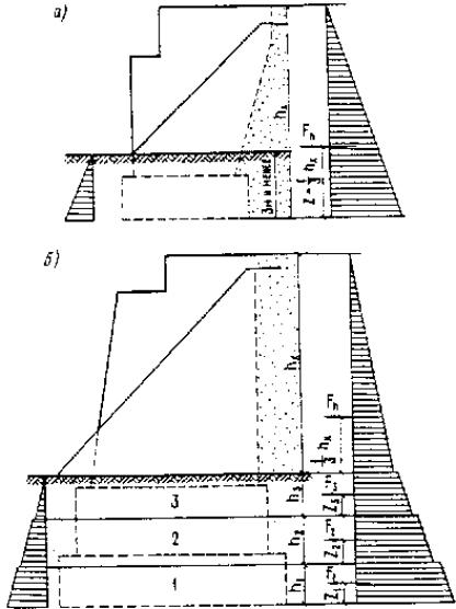 2.5. Нормативное воздействие предварительного напряжения (в том числе регулирования усилий) в конструкции следует устанавливать по предусмотренному (контролируемому) усилию с учетом нормативных величин потерь, соответствующих рассматриваемой стадии работы. В железобетонных и сталежелезобетонных конструкциях кроме потерь, связанных с технологией выполнения работ по напряжению и регулированию усилий, следует учитывать также потери, вызываемые усадкой и ползучестью бетона. 2.6. Нормативное давление грунта от веса насыпи на опоры мостов и звенья труб следует определять по формулам, кПа (тс/м2): а) вертикальное давление: для опор мостов pv = gn h; (3) для звеньев труб pv = Cv gn h; (4) б) горизонтальное (боковое) давление pn = gn hx tn, (5) где h, hx - высота засыпки, м, определяемая для устоев мостов согласно обязательному приложению 3, для звеньев труб - согласно обязательному приложению 4*; gn - нормативный удельный вес грунта, кН/м3 (тс/м3); Cv - коэффициент вертикального давления, определяемый для звеньев труб согласно обязательному приложению 4*; tn - коэффициент нормативного бокового давления грунта засыпки береговых опор мостов или звеньев труб, определяемый по формуле здесь jn - нормативный угол внутреннего трения грунта, град. Значения gn и jn следует, как правило, принимать на основании лабораторных исследований образцов грунтов, предназначенных для засыпки сооружения. При типовом проектировании для определения нормативного давления грунта допускается принимать удельный вес грунта засыпки gn = 17,7 кН/м3 (1,30 тс/м3), нормативные углы внутреннего трения jn - равными: для устоев при засыпке песчаным (дренирующим) грунтом - 35°; для звеньев труб, находящихся в насыпи, - 30°; для оголовков труб - 25°. Методика определения равнодействующей нормативного горизонтального (бокового) давления на опоры мостов от собственного веса грунта приведена в обязательном приложении 3. 2.7. Нормативное гидростатическое давление (взвешивающее действие воды) следует определять в соответствии с указаниями разд. 7. 2.8. Нормативное воздействие усадки и ползучести бетона следует принимать в виде относительных деформаций и учитывать при определении перемещений и усилий в конструкциях. Ползучесть бетона определяется только от действия постоянных нагрузок. Величины нормативных деформаций усадки и ползучести для рассматриваемой стадии работы следует определять по значениям предельных относительных деформаций усадки бетона en и удельных деформаций ползучести бетона cn в соответствии с указаниями разд. 3 и 5. 2.9. Нормативное воздействие от осадки грунта в основании опор мостов должно учитываться при применении пролетных строений внешне статически неопределимой системы и приниматься по результатам расчета осадок фундаментов. 2.10*. Коэффициенты надежности по нагрузке gf для постоянных нагрузок и воздействий, указанных в пп. 2.4-2.9, следует принимать по табл. 8*. При этом на всех загружаемых нагрузкой участках значения gf для каждой из нагрузок следует принимать одинаковыми во всех случаях, за исключением расчетов по устойчивости положения, в которых gf для разных загружаемых участков принимается в соответствии с пп. 1.40* и 1.41*. Таблица 8*