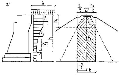 Эквивалентные нагрузки для треугольных линий влияния от одиночных автомобилей нагрузки АБ, а также от стоящих и движущихся колонн этих автомобилей (при установленных минимальных расстояниях между автомобилями) приведены в справочном приложении 7. Примечание. Мосты и трубы, расположенные на дорогах промышленных предприятий, где обращаются автомобили типов МАЗ и КрАЗ с расчетной шириной свыше 2,5 м, а давление задней тележки менее 196 кН (20 тс), следует проектировать на нагрузки А-11 и НК-80. 2.14. Во всех расчетах для элементов или отдельных конструкций мостов, воспринимающих временную нагрузку с нескольких путей или полос движения, нагрузку от подвижного состава с одного пути или полосы движения (где нагрузка приводит к самым неблагоприятным результатам) следует принимать с коэффициентом s1 = 1,0. С остальных путей (полос) нагрузки принимают с коэффициентами s1, равными для: а) нагрузки eСК (одновременно загружается не более трех путей): 1,0 - при длине загружения 15 м и менее; 0,7 - при длине загружения 25 м и более; для промежуточных значений длин - по интерполяции; б) нагрузки АК: 1,0 - для тележек и 0,6 - для равномерно распределенной нагрузки; в) нагрузки АБ - 0,7; г) поездов метрополитена и трамвая - 1,0. 2.15*. При одновременном загружении полос автомобильного движения (совместно с тротуарами) и рельсовых путей (железных дорог, метрополитена или трамвая) временную вертикальную нагрузку, которая оказывает меньшее воздействие (как вертикальное, так и горизонтальное), следует вводить в расчет с дополнительным коэффициентом, определяемым по формулам: при одновременном загружении железнодорожных путей и полос автомобильного движения s2 = 1 - 0,010l, но не менее 0,75; (7) то же, путей метрополитена или трамвая и полос автомобильного движения s2 = 1 - 0,002l, но не менее 0,75, (8) где l - длина загружения пролетного строения нагрузкой, оказывающей меньшее воздействие, м. 2.16. Нормативное горизонтальное (боковое) давление грунта на устои мостов (и промежуточные опоры, если они расположены внутри конусов) от подвижного состава, находящегося на призме обрушения, следует принимать с учетом распространения нагрузки в грунте ниже подошвы рельса или верха дорожного покрытия под углом к вертикали arc tg 1/2 и определять согласно обязательному приложению 8*. Примечание. Совместно с сейсмическим воздействием горизонтальное (боковое) давление грунта на устои от подвижного состава, находящегося на призме обрушения, не учитывается. 2.17. Нормативное давление грунта от подвижного состава на звенья (секции) труб, кПа (тс/м2), на соответствующую проекцию внешнего контура трубы следует определять с учетом распределения давления нагрузки в грунте по формулам: а) вертикальное давление: от подвижного состава железных дорог