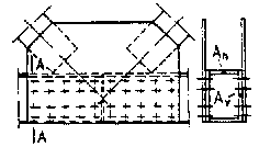 = 1 + В рабочее сечение стыка входит сечение стенки (ребра) и продолжение ее в верхней и нижней плитах. При условии пересечения стыка в пределах стенки наклонными пучками, расположенными в закрытых заинъецированных каналах, в рабочее сечение стыка могут включаться также прилегающие к стенке участки вутов и плиты протяженностью с каждой стороны не более двух толщин плиты (без вутов) или стенки, если она тоньше плиты. При учете совместной работы на сдвиг клееного стыка и жестких элементов (уступов, шпонок и т.п. ), воспринимающих поперечную силу, несущую способность жестких элементов следует принимать с коэффициентом сочетания, равным 0,7. При этом усилие, воспринимаемое жестким элементом, не должно превышать половины величины поперечной силы, действующей на стык. 3.87*. Коэффициенты условий работы msh в формуле (105) следует принимать равными: для клееного плотного тонкого стыка с отверждением клеем - 1,2; для бетонируемого стыка без выпусков арматуры - 1,0; для клееного стыка с неотвержденным клеем с гладкой поверхностью торцов блоков - 0,25; то же, с рифленой поверхностью торцов блоков - 0,45. 3.88*. В стыках составных по длине пролетных строений не допускаются растягивающие напряжения от расчетных постоянных нагрузок, учитываемых при выполнении расчетов по первой группе предельных состояний. Расчет на местное сжатие (смятие)3.89*. При расчете на местное сжатие (смятие) элементов без косвенного армирования должно удовлетворяться условие N £ jloc Rb,loc Aloc, (106) где N - продольная сжимающая сила от местной нагрузки; jloc - коэффициент, принимаемый равным: при равномерном распределении местной нагрузки на площади смятия - 1,00, при неравномерном распределении - 0,75; Aloc - площадь смятия; Rb,loc - расчетное сопротивление бетона смятию, определяемое по формулам: Rb,loc = 13,5 jloc1 Rbt; (107) jloc1 = В формулах (107) и (108*): Rbt - расчетное сопротивление бетона растяжению для бетонных конструкций; Ad - расчетная площадь, симметричная по отношению к площади смятия в соответствии со схемами, приведенными на черт. 9. 3.90. При расчете на местное сжатие (смятие) элементов с косвенным армированием в виде сварных поперечных сеток должно удовлетворяться условие N £ Rb,red Aloc, (109) где Аloc - площадь смятия; Rb,red - приведенная прочность бетона осевому сжатию, определяемая по формуле Rb,red = Rb jloc,b + j Rs jloc,s. (110) В формуле (110): Rb, Rs - в МПа; jloc,b = j, m - соответственно коэффициент эффективности косвенного армирования и коэффициент армирования сечения сетками или спиралями [формулы (83), (84) и (87)] согласно п. 3.72*; Черт. 9. Схемы расположения расчетных площадей Ad в зависимости от положения площадей смятия Аloc jloc,s = 4,5 - 3,5 Aef - площадь бетона, заключенного внутри контура сеток косвенного армирования, считая по их крайним стержням, при этом должно удовлетворяться условие Аloc < Аef £ Аd; Ad - расчетная площадь, симметричная по отношению к площади смятия Аloc и принимаемая не более указанной на черт. 9. Остальные обозначения следует принимать согласно требованиям п. 3.89*. Бетон конструкции в зоне передачи на него сосредоточенных усилий (см. черт. 9) должен быть рассчитан на местное сжатие (смятие), а также по трещиностойкости с учетом местных растягивающих напряжений согласно указаниям п. 3.111*. Расчет на выносливость3.91*. Расчету на выносливость подлежат элементы железнодорожных мостов, мостов под пути метрополитена, совмещенных мостов и плиты проезж