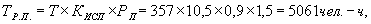 где ТР.П . - фонд времени рабочего поста, чел.; ТОБЩ.. - количество рабочих дней в году, ТОБЩ. = 357; ТСУТ - число часов работы в сутки, ТСУТ = 10,5; КИСП - 0,9 - коэффициент использования рабочего времени; РП - среднее количество работающих на посту РП = 1,5. Количество автозаездов на один пост за год определяют по формуле