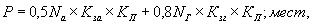где Р - потребная вместимость транзитных мотелей и кемпингов на участке дороги, соответствующему дневному пробегу (Р = 400 - 600 км); Nа, Nг - среднегодовая интенсивность транзитных автотуристов и междугородного грузового движения на участке дневного пробега, определяемые натурным опросом и отнесенные к расчетному году по формуле (10); Кза - коэффициент заполнения легкового автомобиля, равный 2,6; Кзг - среднее количество водителей междугородного грузового движения на один автомобиль, равный 1,5; Кп - коэффициент неравномерности движения по отношению к среднегодовому: в летний период - 1,6; в зимний - 0,5; 0,5; 0,8 - доля проезжающих, пользующихся мотелем, кемпингом соответственно для легкового и грузового транспорта. Зона обследования и выявления транзита на каждой трассе составляла от 400 до 600 км, что равно среднему суточному пробегу транзитного транспорта. Общую потребную вместимость гостиничных учреждений для данного перегона распределяли на несколько адресов с тем, чтобы интервал между ними составлял не более 200 - 300 км. При этом вместимость мотелей определяли по зимней потребности, а кемпингов - по разнице между летней и зимней потребностью. 7. Пункты общественного питания и торговли следует размещать на дорогах не реже чем через 40 - 70 км с учетом существующих предприятий. Доля автомобилей от общего их количества, следующего по трассе, пассажиры которых пользуются предприятиями общественного питания, составляет для легковых автомобилей Ел = 0,3; автобусов Еа = 0,2; грузовых Ег = 0,4. Общее количество обслуживаемых пассажиров, приходящихся на 1000 авт/сут, составляет 550 - 650 человек. Для определения количества мест предприятий общепита принято, что каждый пассажир в течение дня обеспечивается трехразовым питанием, т.е. в среднем через каждые 4 часа. Поэтому количество пассажиров, подлежащих обслуживанию на отдельном перегоне, определяют по формуле