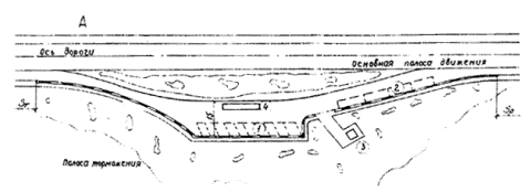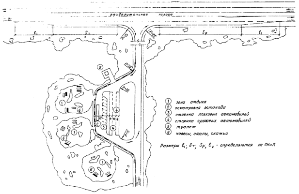 Рис. 2 Пример (схема) расположения площадок для отдыха на съездах с дорог I категории