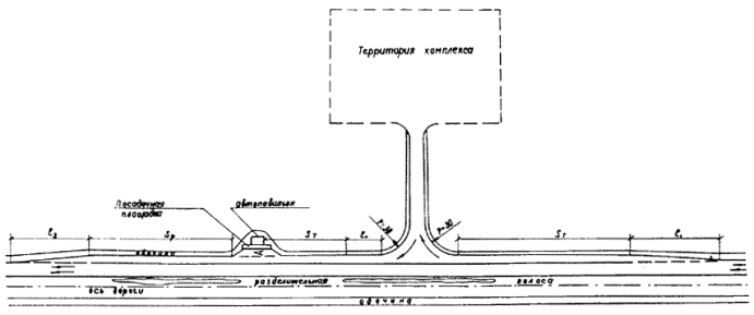 3.8.3. Заказчиком на проектирование и строительство предприятий и объектов автосервиса, а также их комплексов на проектируемых автомобильных дорогах общегосударственного и республиканского значения (или их отдельных участков - очередей) является Министерство автомобильных дорог РСФСР. При проектировании строительства и реконструкции автомобильных дорог общегосударственного и республиканского значения (или их отдельных участков) Министерство автомобильных дорог РСФСР включает в проекты строительство предприятий и объектов автосервиса, предусмотренных, генеральными схемами их размещения, с выделением в сводных сметных расчетах долевого участия соответствующих министерств и ведомств РСФСР, советов министров автономных республик, крайисполкомов и облисполкомов в размере стоимости этих предприятий и объектов. 3.8.4. Министерства и ведомства РСФСР, советы министров автономных республик, крайисполкомы и облисполкомы, принимающие долевое участие в строительстве и реконструкции предприятий и объектов автосервиса на автомобильных дорогах общегосударственного и республиканского значения, передаст министерству (ведомству) - заказчику на эти цели в установленном порядке с годовыми планами лимиты капитальных вложений по соответствующим отраслям народного хозяйства с лимитами проектно-изыскательских и подрядных работ. 3.8.5. После окончания строительства предприятия и объекты автосервиса передаются на баланс соответствующим министерствам и ведомствам РСФСР, советам министров автономных республик, крайисполкомам и облисполкомам. 3.8.6. За пределами расчетного перспективного года генеральная схема размещения предприятий и объектов автосервиса подлежит корректировке на новый перспективный срок с учетом реализованных рекомендаций. 4. РЕКОМЕНДАЦИИ ПРИ РАЗРАБОТКЕ ПРОЕКТОВ ПРЕДПРИЯТИЙ И ОБЪЕКТОВ АВТОСЕРВИСА4.1. Общие положения 4.1.1. Проект предприятий, объектов и комплексов автосервиса на действующих автомобильных дорогах разрабатывается на основании утвержденных генеральных схем и утвержденного в установленном порядке задания на проектирование, а при отсутствии генеральных схем на основании ТЭО или ТЭР на строительство или реконструкцию автомобильной дороги. 4.1.2. Проектирование отдельных предприятий и объектов сервиса на дорогах можно также осуществлять по заданиям соответствующих министерств и ведомств при условии согласования их с Минавтодором РСФСР. 4.2. Размещение сооружений относительно дороги 4.2.1. Размещение сооружений и комплексов обслуживания автомобильного движения и выбор площадок следует выполнять с учетом требований действующих СНиП и указаний по безопасности движения. 4.2.2. При объединении сооружений различного функционального назначения в комплексы на общей или на соседних площадках для обеспечения проезда транспорта от одного сооружения к другому устраиваются внутренние местные проезды. Связь местного проезда с основной дорогой должна быть организована через один въезд и один выезд с устройством переходно-скоростных полос. 4.2.3. Здания и сооружения обслуживания автомобильного движения и их комплексы можно располагать непосредственно у дороги или в удалении от нее в зависимости от планировочных решений населенного пункта или природных условий. Под непосредственным расположением объ