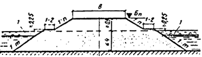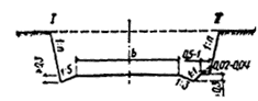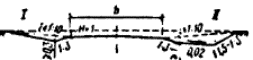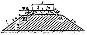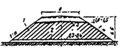 где V, gу и gск.макс - значения те же, что и в формулах (6) и (8). 5.10. Насыпи из переувлажненных глинистых грунтов следует проектировать применительно к поперечным профилям, приведенным на рис. 12 - для железных дорог I - III категорий, рис. 13 - для автомобильных дорог.