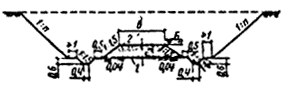 Рис. 8. Поперечный профиль насыпей из грунта бокового резерва для автомобильных дорог на косогорах крутизной от 1:10 до 1:5