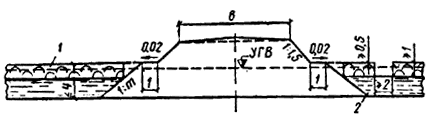 Ширину закюветных полок в выемках для автомобильных дорог допускается уменьшать до 0,5 м. Выемки в переувлажненных глинистых грунтах 6.5. В выемках для железных дорог I - III категории, сооружаемых в глинистых грунтах тугопластичной консистенции (0,25 < В £ 0,50), следует предусматривать замену глинистого грунта основания дренирующим или отходами асбестодобывающих предприятий (рис. 19).