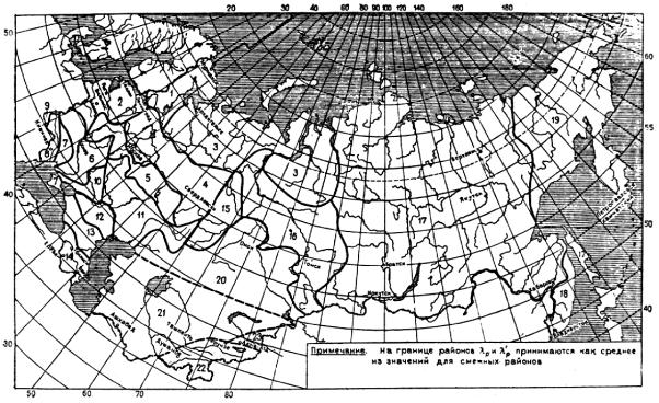 ПРИЛОЖЕНИЕ 19 (РЕКОМЕНДУЕМОЕ)СХЕМА РАЙОНОВ ПАРАМЕТРА lp% и lp% НА ТЕРРИТОРИИ СССР