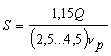 где n - расчетная численность рыб, заходящих в рыбопропускное сооружение за один цикл работы, шт.; V - объем воды, необходимый для одной особи рыб, принимаемый для осетровых равным 0,17 м3 на 1 особь, для остальных видов рыб 0,02 м3 на 1 особь; S - площадь живого сечения потока в рабочей камере при минимальной глубине в ней, м2; для рыбопропускных шлюзов - по формуле