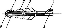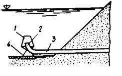 Черт. 12. Зонтичный оголовок водозабора 1 - зонтичный оголовок; 2 - оголовок водозаборной трубы; 3 - водоза6орная труба; 4 - опорная конструкция