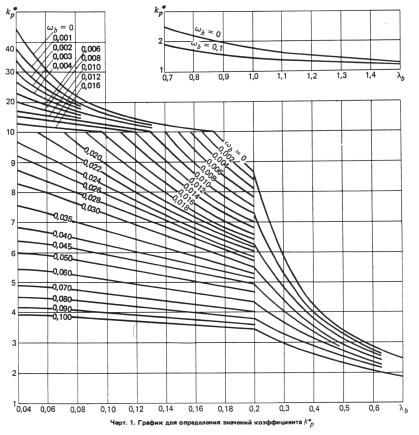 5.1. Поверочный расчет трубопровода производится после выбора его основных размеров с учетом всех расчетных нагрузок и воздействий для всех расчетных случаев. 5.2. Определение усилий от расчетных нагрузок и воздействий, возникающих в отдельных элементах трубопроводов, необходимо производить методами строительной механики расчета статически неопределимых стержневых систем. 5.3. Расчетная схема трубопровода должна отражать действительные условия его работы, а метод расчета - учитывать возможность использования ЭВМ. 5.4. В качестве расчетной схемы трубопровода следует рассматривать статически неопределимые плоские или пространственные, простые или разветвленные стержневые системы переменной жесткости с учетом взаимодействия трубопровода с опорными устройствами и окружающей средой (при укладке непосредственно в грунт). При этом коэффициенты повышения гибкости отводов и тройниковых соединений определяются согласно п.п. 5.5 и 5.6. 5.5. Значение коэффициента повышения гибкости гнутых и сварных отводов кр надлежит определять по табл. 8. Величина кр* принимается по черт. 1 в зависимости от геометрического параметра отвода lb и параметра внутреннего давления wb. Значения параметров lb и wb следует определять по формулам: