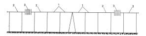 Схема прокладки трубопровода на опорах 1 - средние пролеты; 2 - крайние пропеты; 3 - компенсирующие устройства