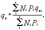 где a - коэффициент, определяемый согласно рекомендуемому приложению 4 в зависимости от общего числа приборов N на расчетном участке сети и вероятности их действия Р, вычисляемой согласно п. 3.4. При этом табл. 1 рекомендуемого приложения 4 надлежит руководствоваться при Р > 0,1 и N £ 200; при других значениях Р и N коэффициент a следует принимать по табл. 2 рекомендуемого приложения 4. При известных расчетных величинах Р, N и значениях q0 = 0,1; 0,14; 0,2; 0,3 л/с для вычисления максимального секундного расхода воды допускается пользоваться номограммами 1-4 рекомендуемого приложения 4. Примечания: 1. Расход воды на концевых участках сети следует принимать по расчету, но не менее максимального секундного расхода воды одним из установленных санитарно-технических приборов. 2. Расход воды на технологические нужды промышленных предприятий следует определять как сумму расхода воды технологическим оборудованием при условии совпадения работы оборудования по времени. 3. Для вспомогательных зданий промышленных предприятий значение q допускается определять как сумму расхода воды на бытовые нужды по формуле (2) и душевые нужды - по числу установленных душевых сеток по обязательному приложению 2. 3.4. Вероятность действия санитарно-технических приборов Р (Ptot, Ph, Рc) на участках сети надлежит определять по формулам: а) при одинаковых водопотребителях в здании (зданиях) или сооружении (сооружениях) без учета изменения соотношения U/N б) при отличающихся группах водопотребителей в здании (зданиях) или сооружении (сооружениях) различного назначения Примечания: 1. При отсутствии данных о числе санитарно-технических приборов в зданиях или сооружениях значение Р допускается определять по формулам (3) и (4), принимая N = 0. 2. При нескольких группах водопотребителей, для которых периоды наибольшего потребления воды не будут совпадать по времени суток, вероятность действия приборов для системы в целом допускается вычислять по формулам (3) и (4) с учетом понижающих коэффициентов, определяемых при эксплуатации аналогичных систем. 3.5. Максимальный секундный расход сточных вод qs, л/с, следует определять: а) при общем максимальном секундном расходе воды qtot £ 8 л/с в сетях холодного и горячего водоснабжения, обслуживающих группу приборов, по формуле